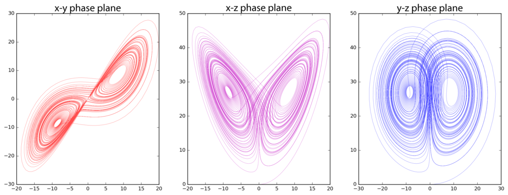 For more about chaos, check out this blog post and this article. You can easily animate the Lorenz system and visualize its strange attractor with Python, using my code this GitHub repo. You might also be interested in Pynamical, a Python package for easily playing around with chaos, fractals, and strange attractors.